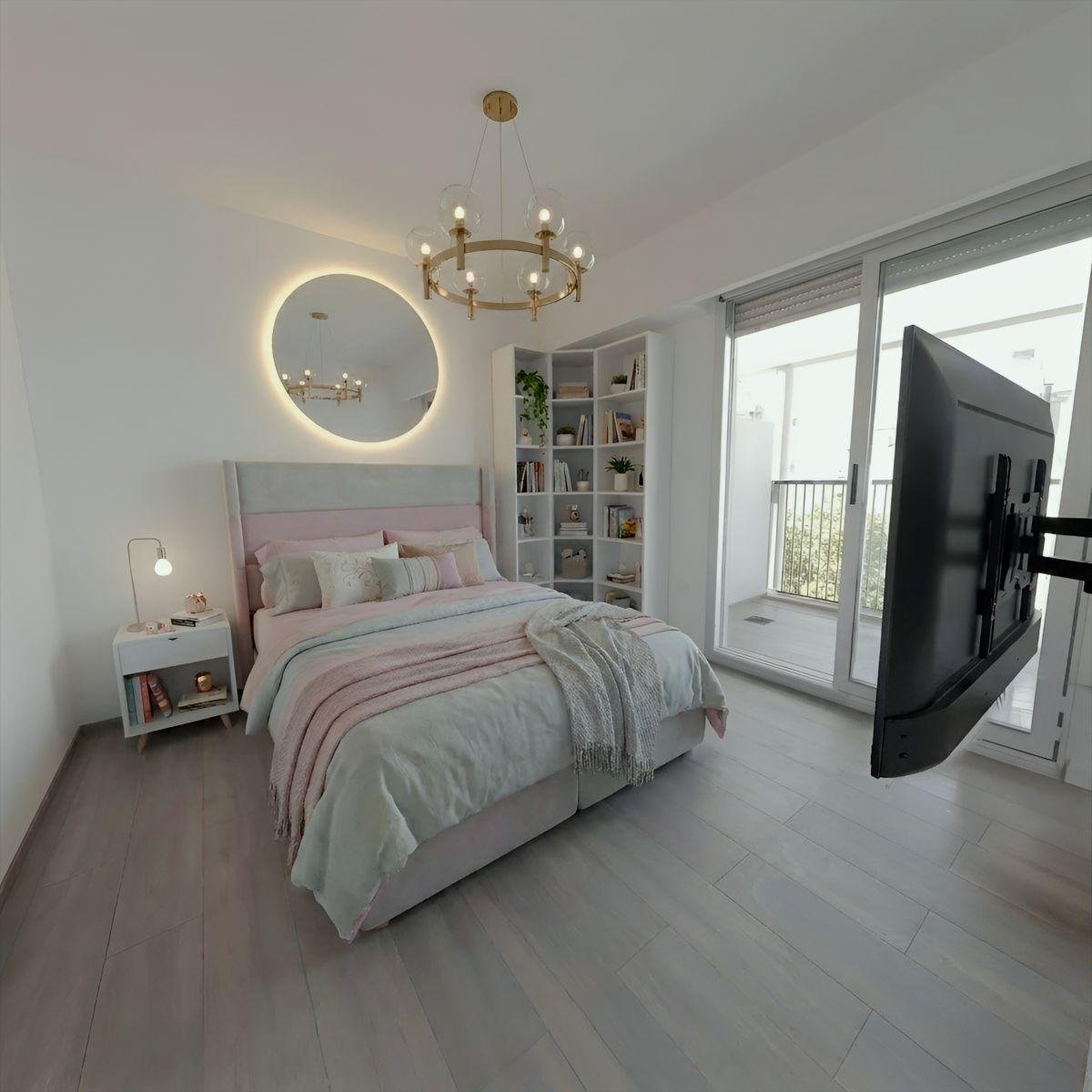 - Dormitorio principal amplio de 3.45 x 3.25, con ventanal con persiana con salida a balcón. Posee placard doble puerta espejado con interiores. Split.