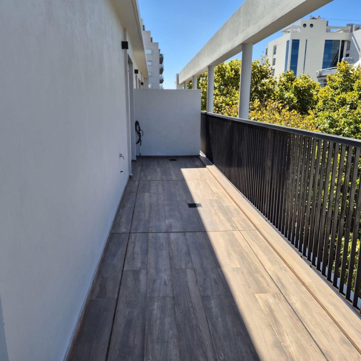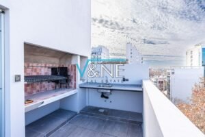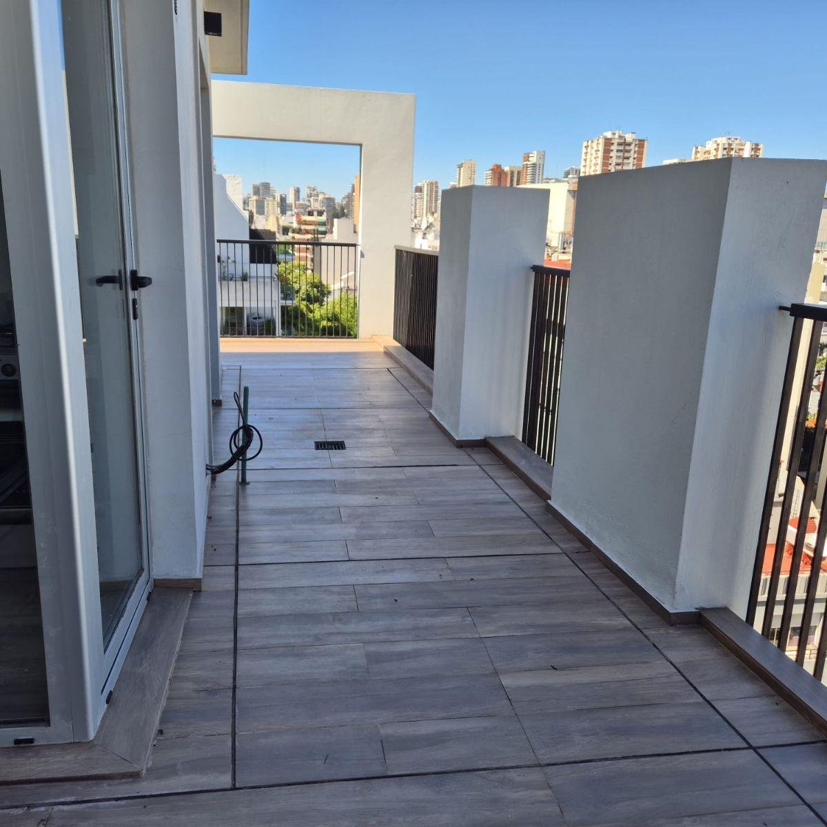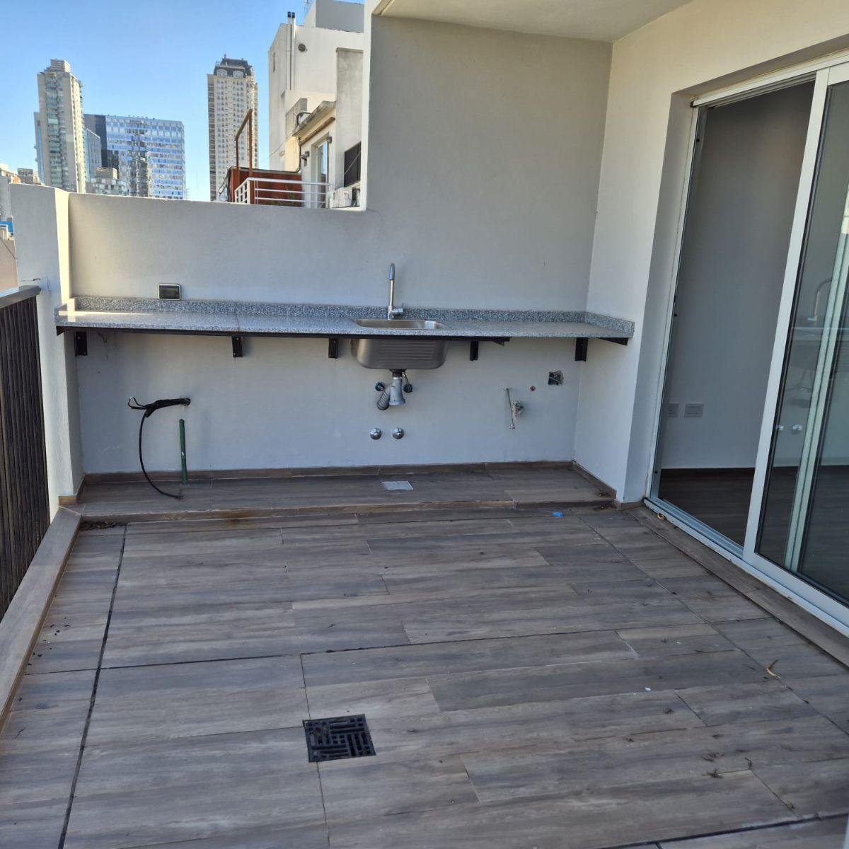 - Balcón terraza en L con mesada de granito, bacha y bajo mesada con conexión para lavarropas. No es último piso.