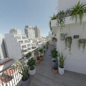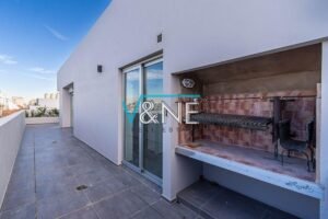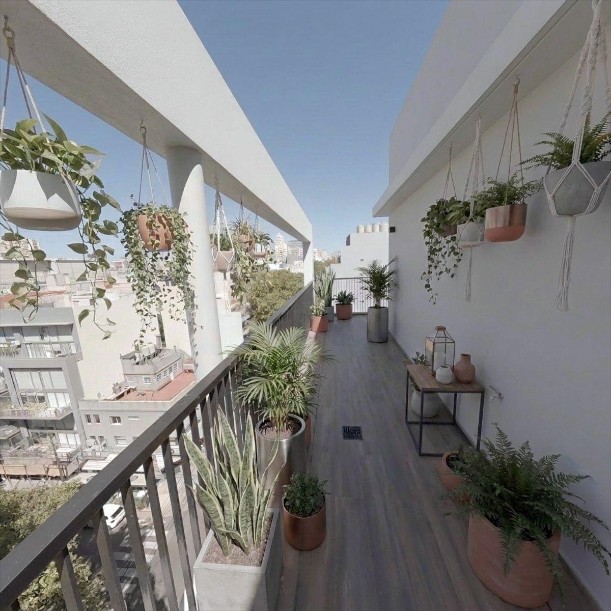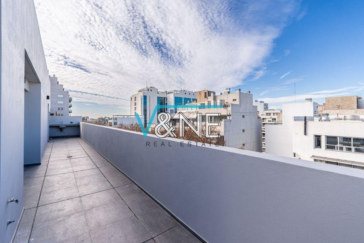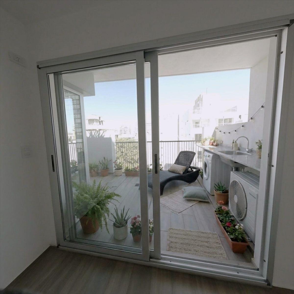- Balcón terraza en L con mesada de granito, bacha y bajo mesada con conexión para lavarropas. No es último piso.