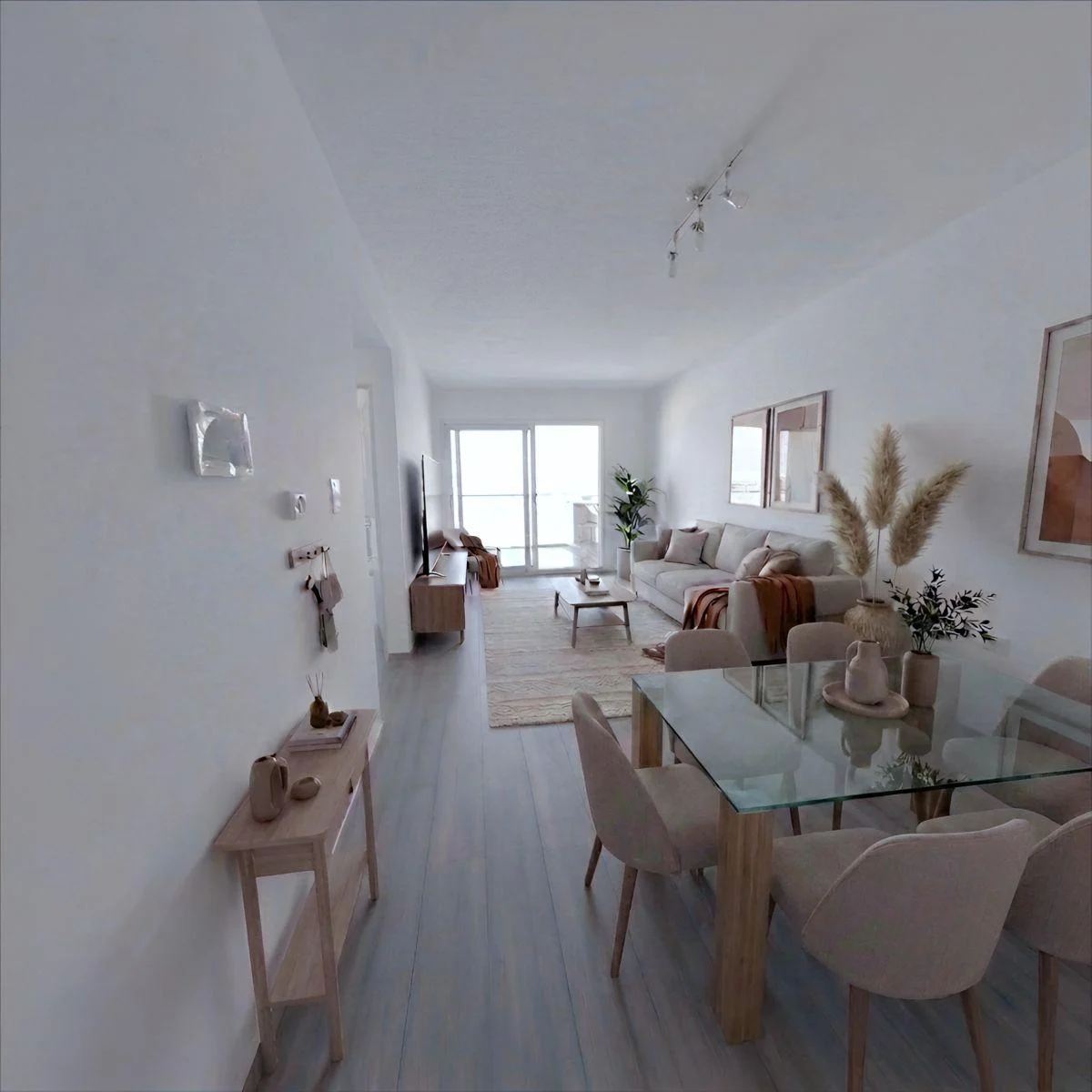 - Living comedor con salida a balcón aterrazado.